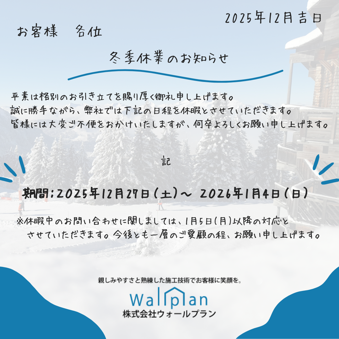 ※休暇中のお問い合わせに関しましては、1月5日(月)以降の対応とさせていただきます。